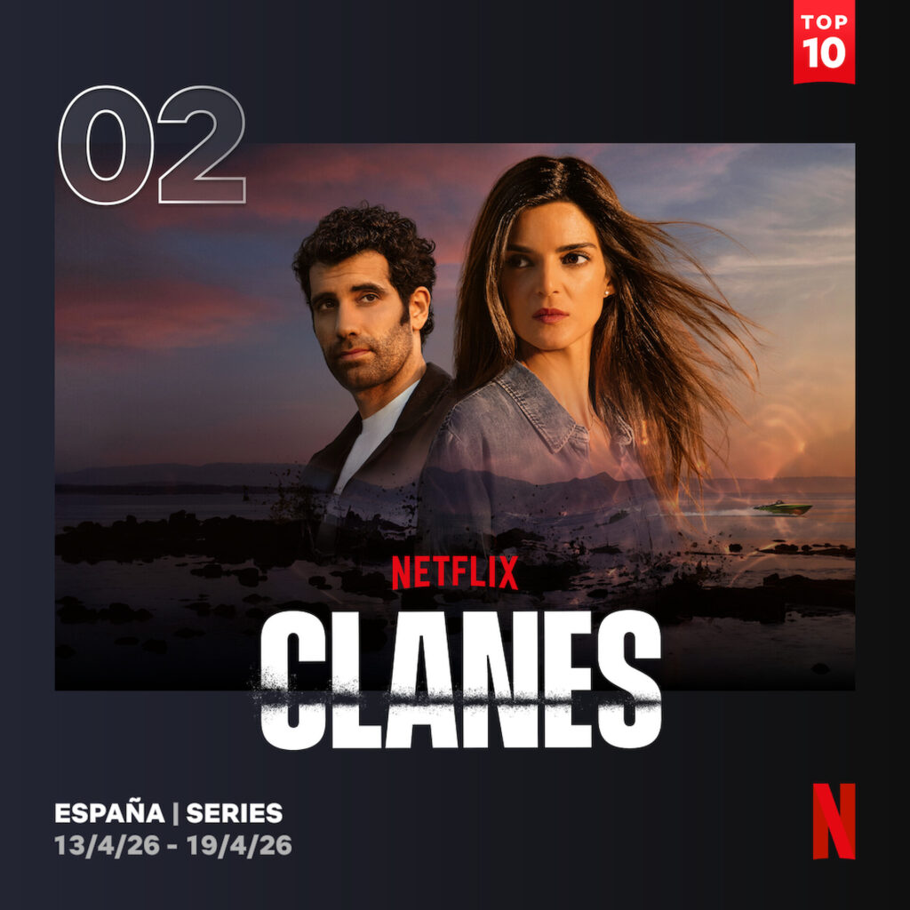 Las dos temporadas de CLANES continúan entre lo más visto en Netflix en España. La segunda temporada sigue liderando la lista solo superada por el estreno de Machos Alfa, mientras la primera temporada se mantiene en el Top 5.